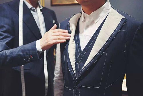胸部較平的伙伴,可以用厚一些的胸絨、胸襯撐起西服;特別是溜肩的伙伴可以用稍厚一點(diǎn)的墊肩。但凡事都不可過度,特體也是如此。