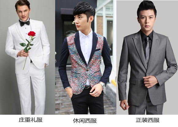 根據(jù)穿西服可能出席的場(chǎng)所,大體可分成三類:禮儀場(chǎng)所、商務(wù)場(chǎng)所、休閑場(chǎng)所。