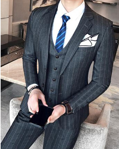 灰色給人感覺顯正式莊重,灰色西裝再搭配條紋的設計,不但增強權威感,且避免了古板。既不會太過歡脫,又能兼顧商務與休閑場合,因此也有著極高的使用率。