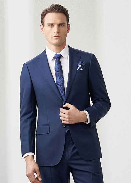 2、暗藍色西裝,可以配藍、胭脂紅和橙黃色領帶,穿白色和亮藍色的襯衫。