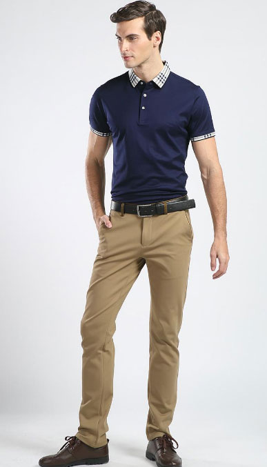 夏天是穿POLO衫的高峰季節,POLO衫作為一件在時尚界有著頑強生命力的單品,它即沒有T恤那樣隨意,也不像襯衫那樣嚴肅,它是可以在休閑時穿,也可以適用于工作上,如最常見的商場銷售人員的穿著。那么polo衫搭配什么褲子好看呢?