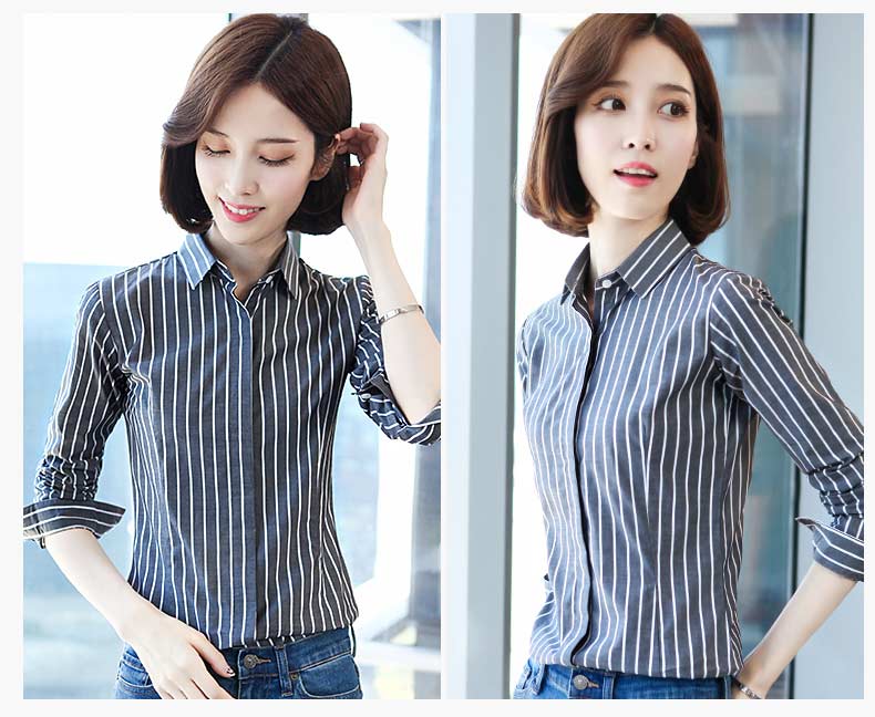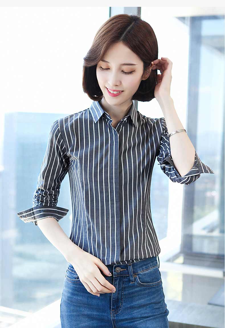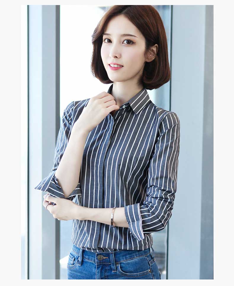 百搭時尚條紋襯衫,貼合女性身材的柔美曲線,提升腰線,拉長腿部線條,讓你更高挑挺拔.