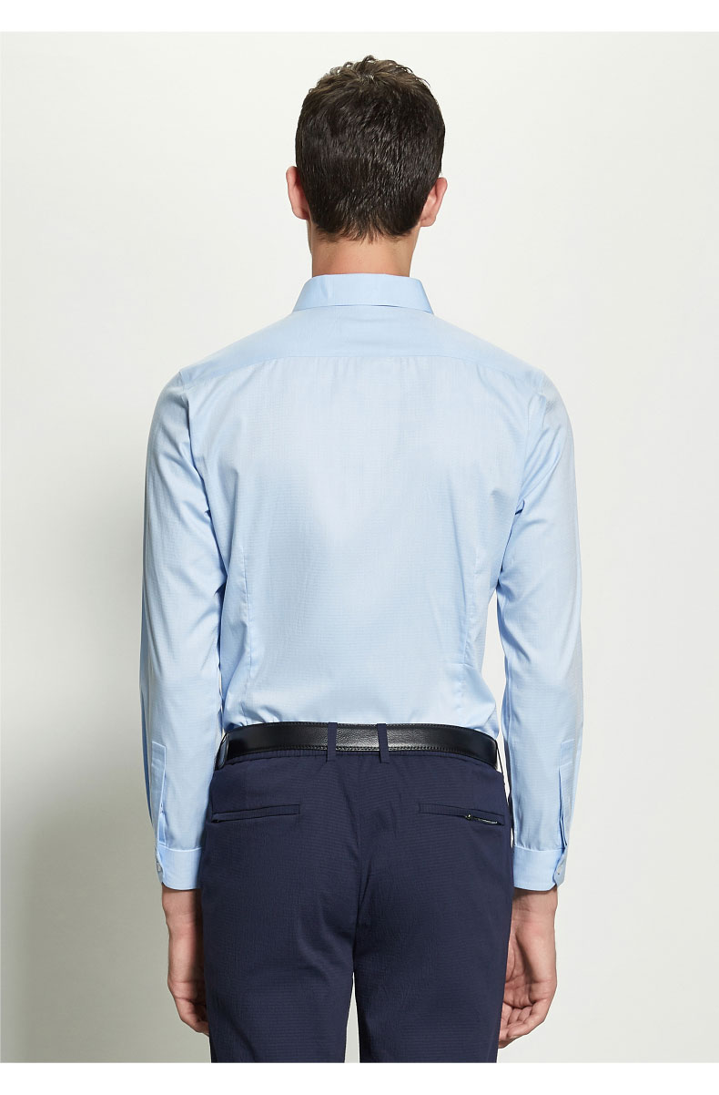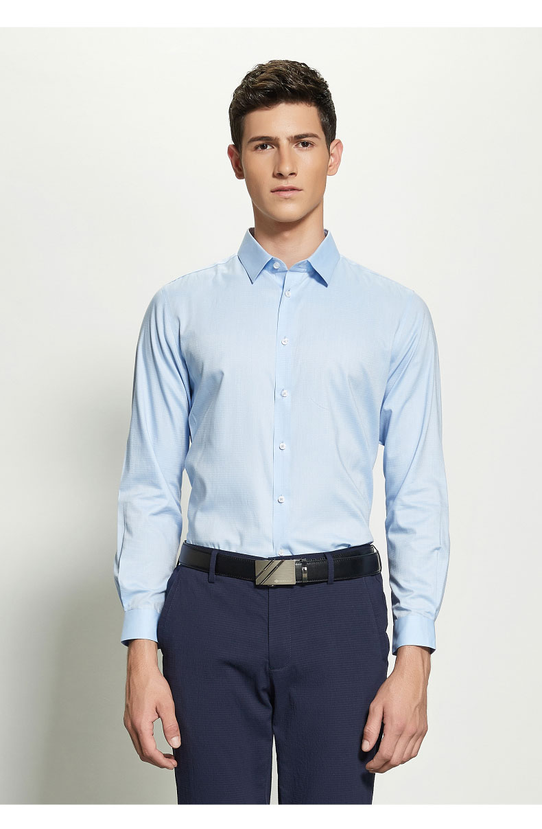 男士商務(wù)職業(yè)襯衫采用純棉面料制作,舒適柔軟,透氣吸濕,給人清爽的感覺.