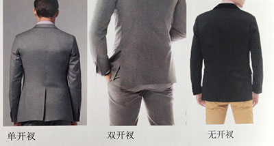 西裝后背一般有開衩,當初開衩的設計是為了穿著者騎馬方便。開衩分為單衩和雙衩,單衩屬于輕松活潑的風格,多用在開襟低的設計,身材不高的男士最好選擇單開衩,在視覺上會顯高。雙衩方便男士手插于口袋,不會影響西服外型,雙開衩適合身材高大的男士?,F在穿著西服已不像從前因為騎馬,必須下擺開衩以便活動,所以也可以選擇不開衩。另外有一點需要注意,雙開衩的西服無法修改衣服的松量,如果是要涉及到日后隨著體型的改變需要修改衣服的,不建議用雙開衩。