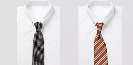 與禮服襯衫或正裝襯衫相比,商務休閑襯衫可以有更多的領帶選擇,如方頭領帶、針織領帶、格紋領帶、自由花紋領帶以及各類個性化的領帶等等。